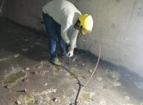 1、确定渗漏点:堵漏前必须进行现场调查,摸清现场施工情况,分析渗漏水的原因,查清漏水部位、裂缝、裂纹或穿孔的宽度、长度、深度和贯穿情况,并了解雨天和晴天的漏水情况,测量漏水的流量与流速等,通过充分调查,正确拟订堵漏方案,做好个项准备工作。 2、剔凿渗漏基面:在渗漏部位剔凿5-10cm,剔除后用清水清理干净。 3、灌浆孔的设计和布孔:灌浆孔的布孔有骑缝和斜孔两种形式,根据实际情况和需要加以选择,必要时两者4 、灌浆孔的设计:灌浆孔的位置,应使孔和漏水裂缝空隙相交,并选在漏